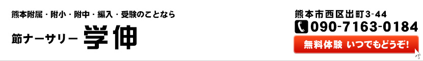 - 節ナーサリー学伸は、生徒の受験を考え、基礎をしっかり押さえ教科書中心の勉強と月1回のテストと応用教材で取り組みます。テストは出来なかった所をしっかり指導して、その生徒の出来ない所を把握し、今後のその生徒の弱点指導に役立てます。